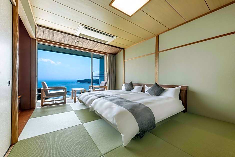 Featuring free toiletries, this quadruple room includes a shared bathroom with a bidet, a hairdryer and slippers. The air-conditioned quadruple room features a flat-screen TV with satellite channels, tatami, a tea and coffee maker, a wardrobe as well as sea views. The unit has 2 beds and 2 futons.